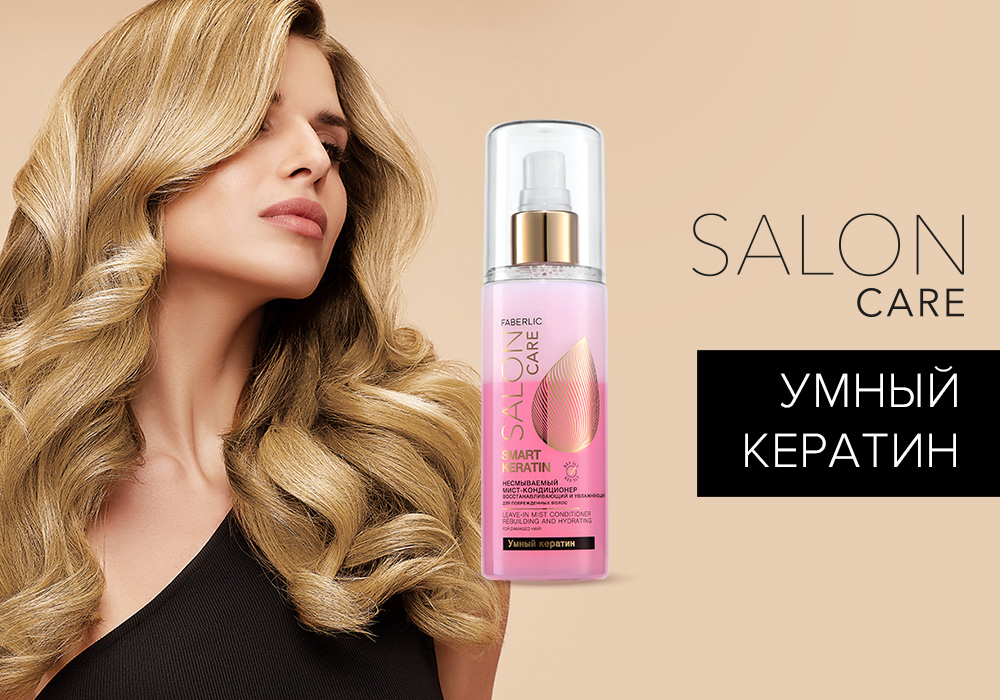 Линейка средств «Умный кератин» в серии Salon Care – скорая помощь для тех, кто недоволен внешним видом волос. В линейке появилось новинка – несмываемый мист-кондиционер.