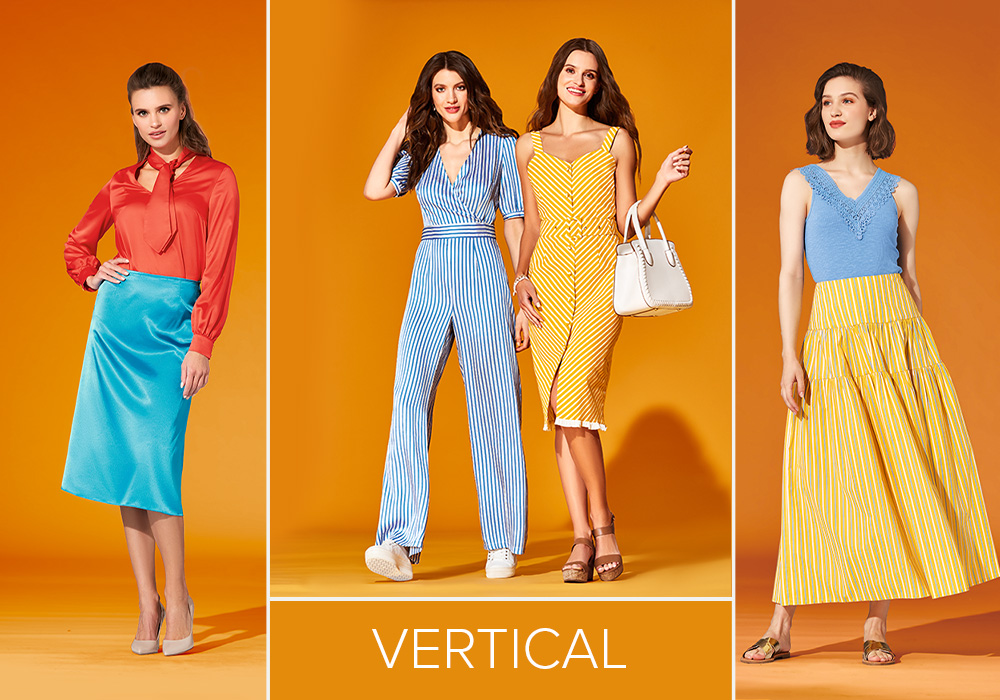 Шафран и деним – модная парочка этого сезона. Вокруг этих оттенков построена коллекция Vertical. Вдохновением для неё послужили море и песок. Комфортный крой вещей, актуальный полосатый принт и внимание к деталям – всё, чтобы создать эффектные летние луки.