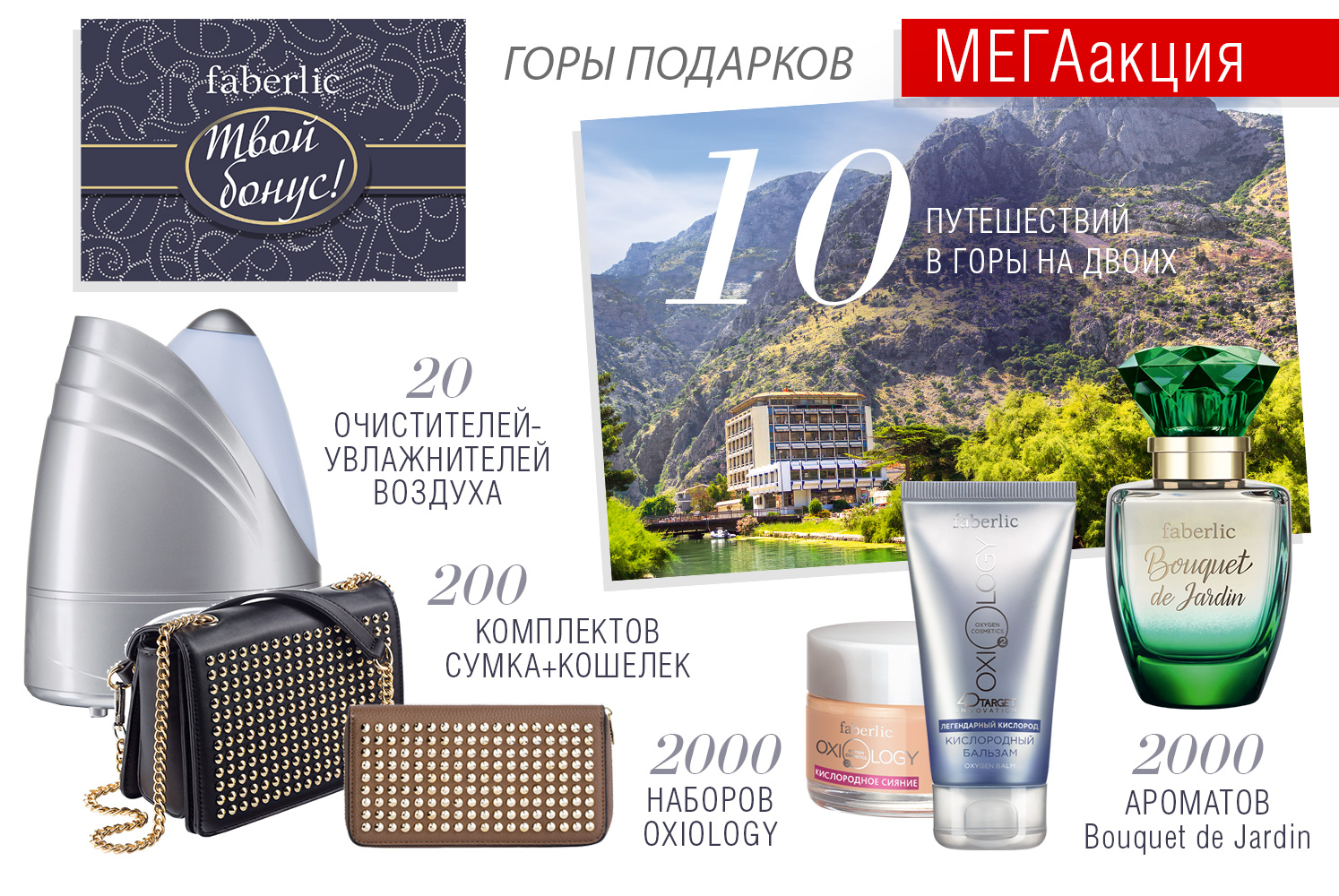 Делайте покупки по новому каталогу, наслаждайтесь выгодным шопингом, получайте гарантированные подарки*, а ещё – возможность отправиться в горы на длинный ноябрьский уикенд! 1. Получите карту «Твой бонус». Закажите любые товары из каталога №14 на сумму от 149 грн., и карта придет вместе с вашими покупками. Каждая карта дает право на гарантированный подарок* в период действия следующего каталога и возможность получить один из главных призов.